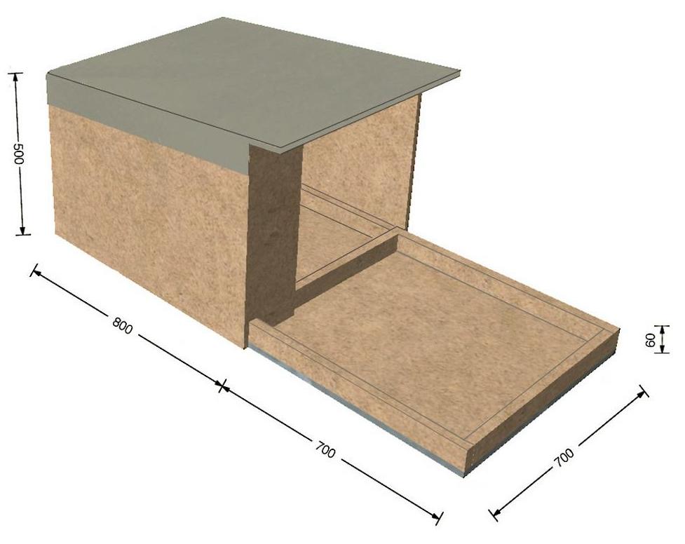 · Gewicht Kasten ca. 45 kg, Gewicht Einstreu ca. 35 kg → insgesamt ca. 80 kg